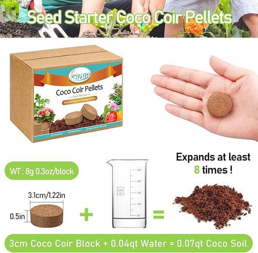 Legigo 200 Pcs 30mm Coco Coir Pellets Seed Starting Soil Mix- Compressed Coconut Coir Pellets Potting Soil Pods for Seedling, Coco Peat Soil Discs for Indoor & Outdoor Plants, Herb Vegetables Flowers