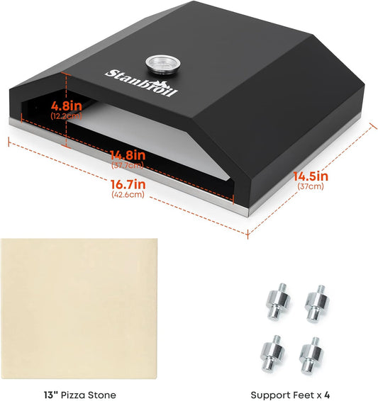 Stanbroil Outdoor Pizza Oven for Blackstone 17" or 22" Tabletop Griddles, Portable Pizza Maker with 13" Pizza Stone and Temperature Gauge, Blackstone Flat Top Gas Grill Accessories
