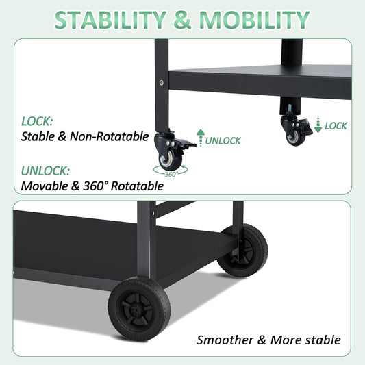 Pizza Oven Cart Table and Topping Station for Ooni Koda/Karu/Fyra 16 & 12, Movable Thicken & Widen Rolling Kitchen Cart, Outdoor Grill Stand for Ninja Woodfire,Blackstone Griddle