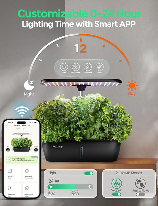 LETPOT LPH-Lite Hydroponics Growing System, 12 Pods Smart Herb Garden Kit Indoor, Indoor Garden, APP & WiFi Controlled, with 24W Growing LED, 5.5L Water Tank, Pump System, Automatic Timer