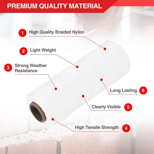 Goldblatt Mason Line, 3 Roll 500 Feet #18 Braided Nylon String, Perfect for Gardening or Masonry Tools