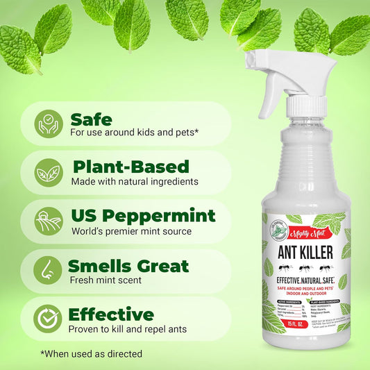 Mighty Mint Peppermint Oil Ant Killer Spray β Natural Ant Repellent for Indoor & Outdoor Use β Plant-Based Insect & Pest Control β 16 oz (Pack of 2)