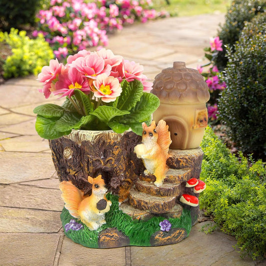 Solar Garden Statue Squirrel Decor,Flower Pots Planters Pots for Succulent,Outdoor Garden Sculpture for Patio Balcony Yard Lawn Decor,Unique Gift for Dad Mom Grandma
