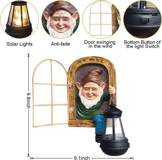 Whimsical Fairy Garden Gnomes with Solar Lights-10 Elf Out The Door Tree Hugger Garden Statues-Outdoor&Yard Decor-Tree Face Sculpture,Ideal Halloween Gifts - Yard Art for Patio,Fence,Wall