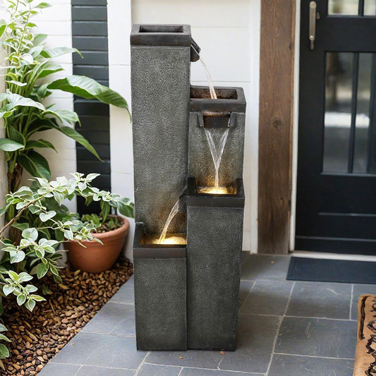 SunJet 4-Tier Modern Water Fountain, Indoor/Outdoor Resin Water Fountains with Soothing Water Sounds, Perfect for Garden, Patio, Home & Office, 12.5" L x 9.4" W x 39.3" H