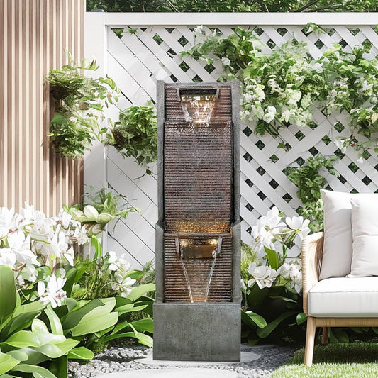 Outdoor Garden Waterfalls Fountains with Led Lights Water Fountain Outdoor/Indoor Resin Fountain for Patio Decor Garden, House, Office, Garden, Home Art Decor