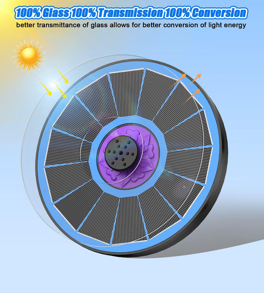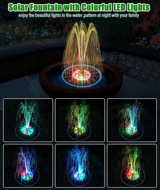 SZMP Solar Fountain Pump Upgraded 100% Glass Panel, 3.5W Solar Powered Fountain Built-in 2000 Battery with 7 Nozzle & 4 Fixer, Solar Fountain for Bird Bath, Pond, Fish Tank, Outdoor (Colorful)