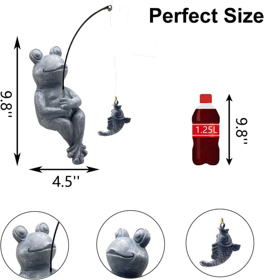 Frog Fishing Statue Garden Decor – 9.8" Weatherproof Resin Frog Fishing Sculpture Decor for Fish Ponds, Koi Ponds, Waterfalls, Poolside & Outdoor Gardens– Resin Figurine for Indoor & Outdoor Décor