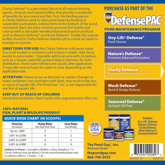 The Pond Guy Clarity Defense Water Garden Flocculant, Clear Cloudy Water, Stimulate Beneficial Microbe Growth, Fish, Plant & Animal Safe, 3 lbs