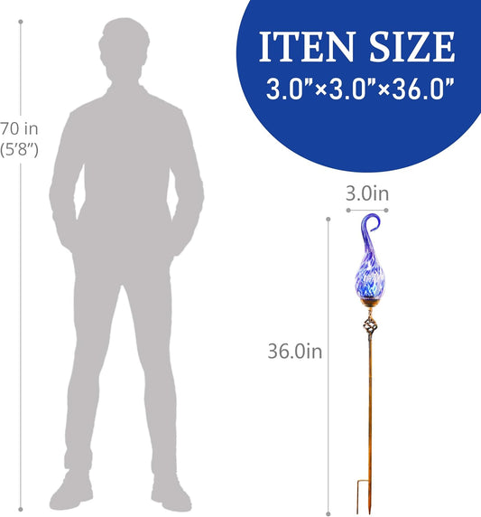 Garden Solar Lights Outdoor, Decorative LED Pearlized Glass Spiral Garden Stake with Finial, Hand Blown Glass and Metal Outdoor Decoration, 3 x 36 Inch (Dark Blue)
