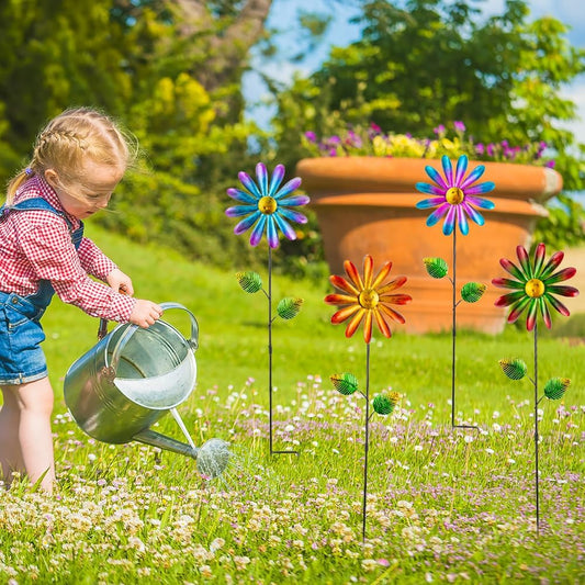 DREAMYSOUL 4 Packs Metal Flowers Wind Spinners Outdoor, Pinwheel Decorative Garden Stakes, Metal Small Wind Spinner for Yard and Garden Decor