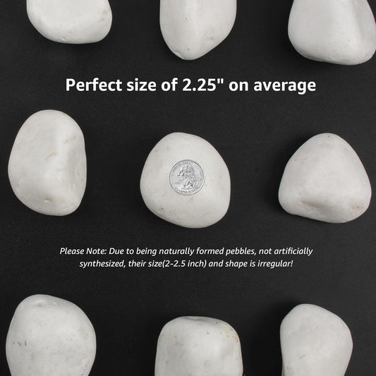 River Rocks - Natural Polished White Pebbles, 2-3 inches, 10 lbs - Ideal for Patio Landscaping, Rock Gardens, Succulent Arrangements, and Pathway Edging (White, Weight: 10 LB)