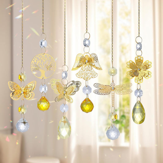 6pcs Yellow Crystal Suncatchers for Window Hanging Ornaments Garden Sun Catchers with Crystals Rainbow Maker Indoor Outdoor Decor