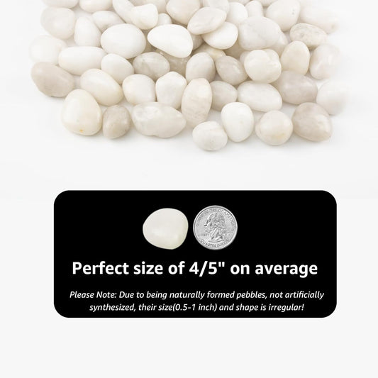 20 lbs White Polished Garden Stones, 0.5-1 Inch Decorative Rocks for Landscaping, Pathways, Yard Borders, Pots, Aquarium Decoration, and DIY Craft Projects (Pure White, Weight: 20 LB)