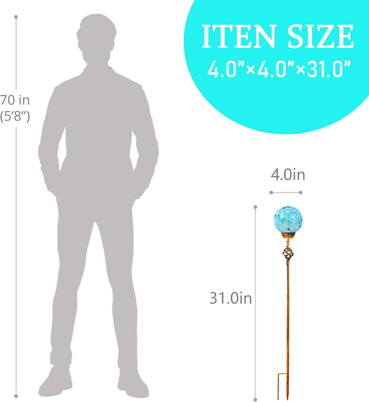 Garden Solar Lights Outdoor, Decorative LED Honeycomb Glass Ball Garden Stake, Glass and Metal Outdoor Decoration, 4 x 31 Inch (Light Blue)
