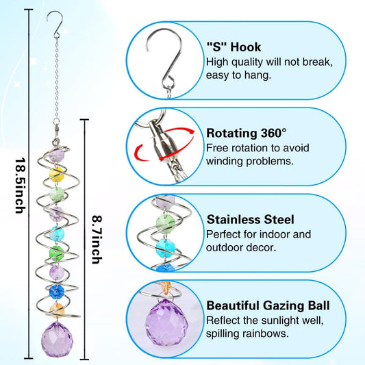 Sun Catchers Gazing Ball Spiral Tail Wind Spinner with Crystal Suncatcher for Hanging Ornaments Decorative Indoor Outdoor Windows Prism Rainbow Maker Car Mirror Home Yard Garden Decor