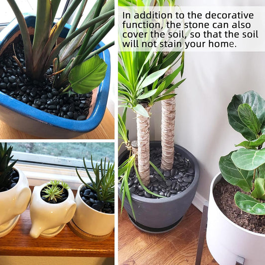 2LB Succulent and Cactus Black Pebbles, 3/8 Inch Natural Decorative Polished Stones, River Rocks for Indoor Plants, Vases, Planters and Outdoor Gardening