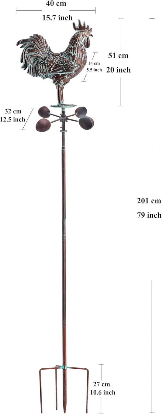 Metal Garden Rooster Yard Decor,79" Copper Wind Sculptures & Spinners,Large Outdoor Chicken Decor,Metal Kinetic Outdoor Chicken Wind Spinner for Yard and Garden,Yard Art for Patio,Lawn,Farm