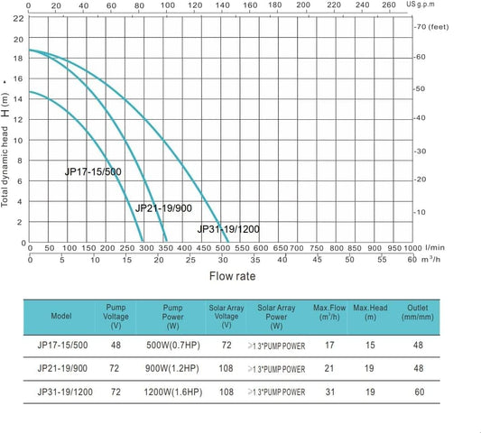 Solar Powered Swimming Pool Pump, 72VDC, 1.6HP, 62ft, 136GPM, Solar Water Pump with MPPT Controller, Suitable for Salt Water, JP31-19/1200