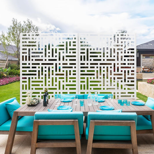 Metal Privacy Screen Outdoor Freestanding Privacy Wall Panels and Decorative Patio Dividers, Crafted from Steel with Sun-Proof Design, Ideal for Patio, Deck, Garden,72" H×47" L,(White&Star)