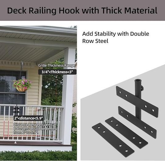 Deck Hook-Deck Railing Plant Hanger Outdoor,Bird Feeder Hanger for Deck Railing W/Non-slip Pads, Fence Shepherds Hooks Bracket for Hanging Hummingbird Feeder,Planter,Flower Baskets-360°Rotating Pole