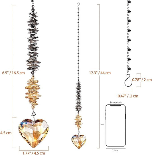 2PCS Exquisite Heart Crystal Sun Catcher Prisms, STINO Hanging Suncatchers with Glass Prism, Rainbow Maker for Windows, Balcony, Kitchen, Garden Decoration (1, Exquisite Heart 2Pcs)