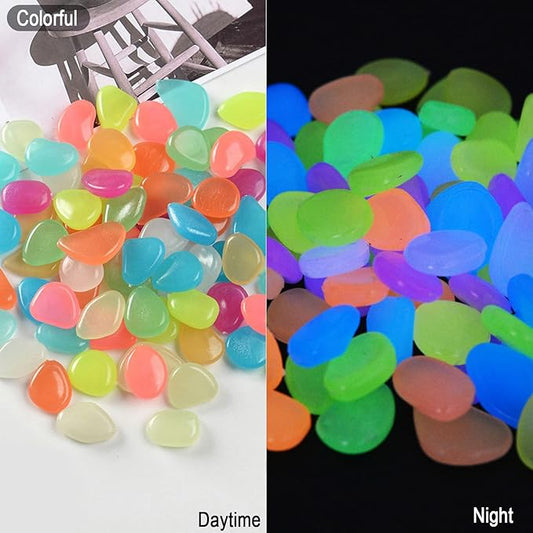 Oismys Glow in Dark Rocks Luminous Stones 200Pcs Garden Accessories Micro Landscape Fish Tank Decoration Outdoor Patio Lawn Yard Kit