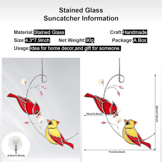 Cardinal Suncatchers Stained Glass for Window Hangings, Cardinal Sun Catchers Gifts for Women, Red Birds Sun Catchers for Christmas Dec, Cardinal Window Suncatcher Ornament