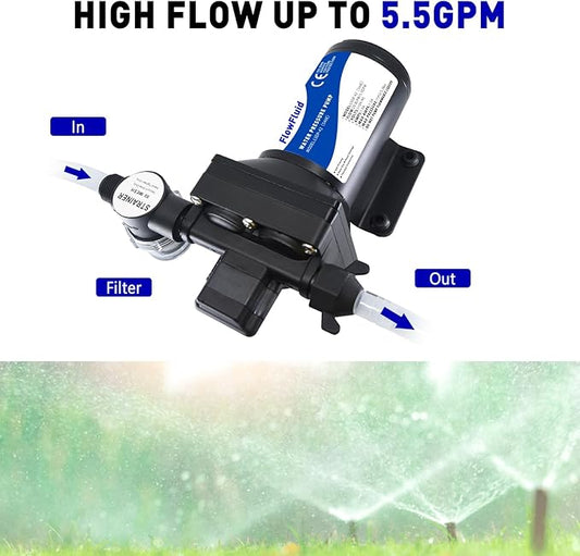 Water Pressure Booster Diaphragm Pump 110V AC for House,70PSI 5GPM Water Transfer Pump with Plug,On Demand 4-Chamber Self-Priming Water Pump with Filter for Bathroom Kitchen Irrigation Spray