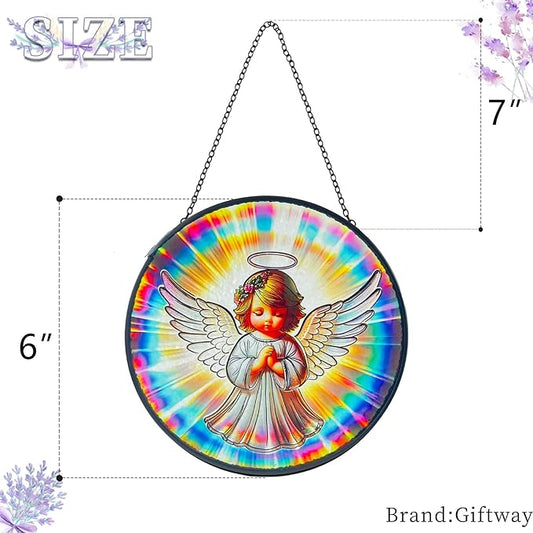 Praying Angel Decor Handmade Stained Glass Suncatcher - Rainbow Maker Stained Glass Suncatchers W/Metal Chain - Spiritual Angelic Gift for Women Christmas Thanksgiving Housewarming Gifts