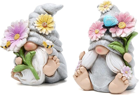 Hodao Set of 2 Spring Gnome Decorations Flower Gnomes Ornaments Decor Summer Gnomes Figurines Spring Gnomes for Outdoor Garden Decor Spring Birthday Gifts for Women, Mom, Grandma (Grey)