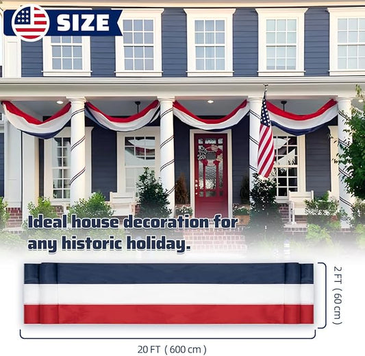 2x20Ft Large Patriotic US Flag Bunting Decorations 4th of July Red, White & Blue Stripe Banner Veterans Day Memorial Days Celebration Decorations Home Garden Outdoor-1Pack