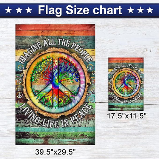 FLAGWIX American Flag, Peace Sign Hippie Flag, Imagine All The People Living Life In Peace - 4th of July Decorations, Garden Flag 12x18 - USA Flags Premium Polyester, Decorative Indoor Outdoor Flag