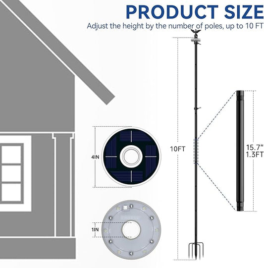 ZMTECH 10 FT Flag Pole in Ground with Solar Light, Heavy Duty Flag Pole Holder for Outside House with Solar Light and 5 Pronges Base, Flag Pole Kit for Outdoor Garden Decor(1 Pack,Without Flag)