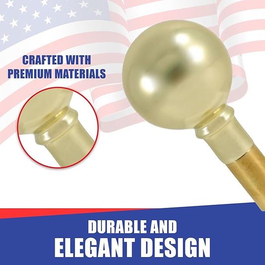 Super Tough Indoor Flag Pole kit 9ft - Parade Ball - Gold Texture Base - Aluminum Flagpole with Brass Finish - Heavy Duty Inside House Flagstaff - Interior Shaft and Stand - No Ensign Included