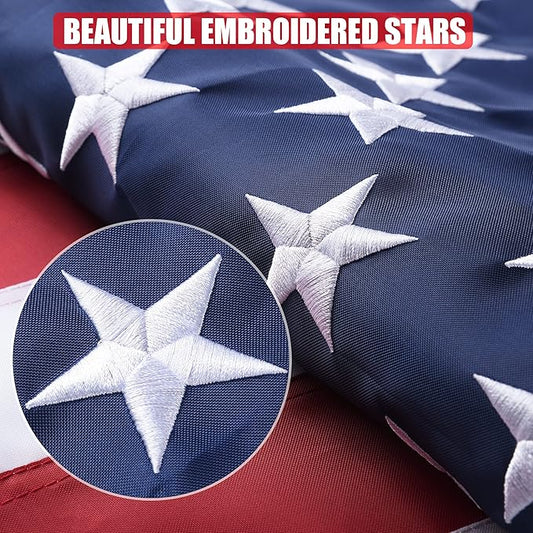 American Flag 6x10 Outside, US Flags for Outdoor Indoor, Heavy Duty Durable, Deluxe Embroidered Stars, Brass Grommets, Sewn Stripes, Vivid Color, Fade Resistant and waterproof