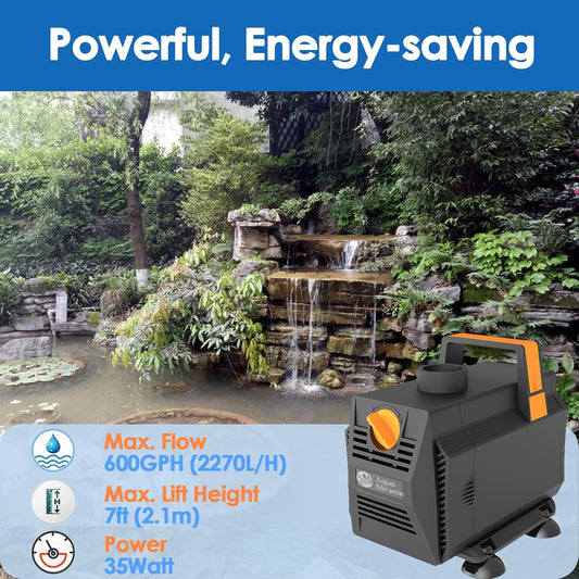 AquaMiracle 600GPH Submersible Water Pump Pond Pump(2270L/H, 35W), Water Fountain Pump Aquarium Water Pump with Flow Control for Fish Tank, Waterfall, Statuary, Filtration, Water feature, Hydroponics