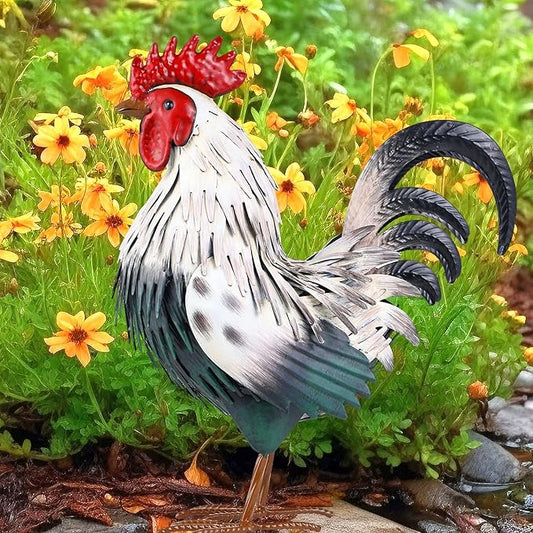Rooster Garden Statue Sculpture Metal Chicken Yard Decor Outdoor Figurines Patio Backyard Decoration