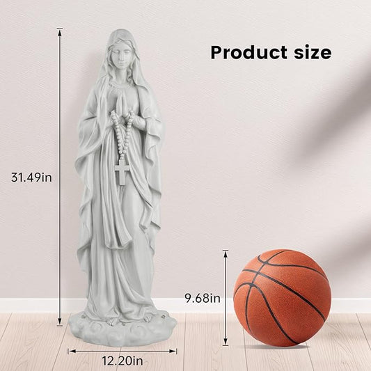 Virgin Mary Statue 29.9” Tall Religious Large Garden Statue Art Décor Blessed Mother Outdoor Statues for Garden in Magnesium Oxide Stone for Garden, Yard, Patio, Lawn, Hallway,Gray