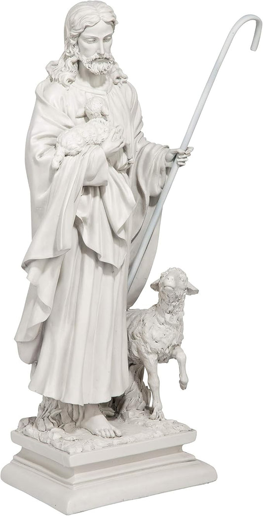 Design Toscano EU1785 Jesus The Good Shepherd Religious Garden Statue, 12 Inches Wide, 8 Inches Deep, 28 Inches High, Antique Stone Finish
