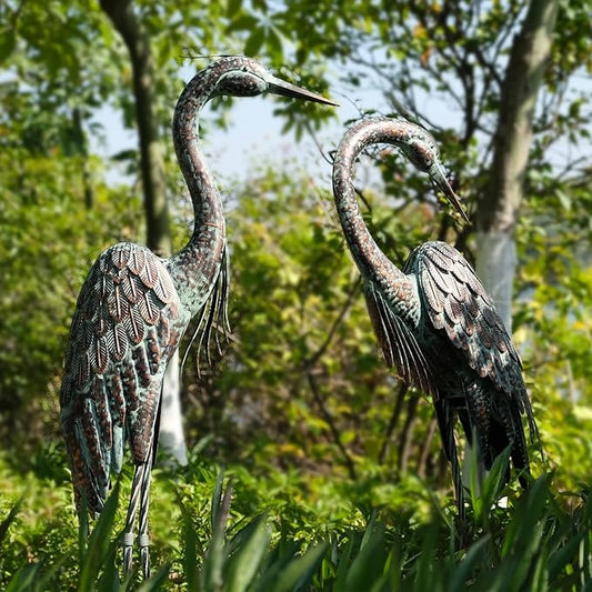 Kircust Metal Crane Statues - Set of 2 Bronze Heron Sculptures for Garden, Patio, or Yard Decor - 27.56" Tall Weatherproof Outdoor Art