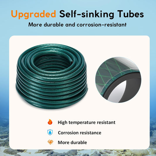 3/8 Inch Self Sinking Aeration Hose, 100 Feet Weighted Pond Aerator Hose Kit 8 Stainless Steel Hose Clamps and 4 Menders for Pond and Lake Aeration