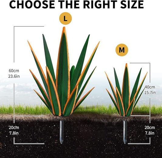Large Tequila Rustic Sculpture, Agave Plants for Outdoor Patio, Home Decor Hand Painted Metal Garden Statue, Lawn Ornaments Yard Stakes (Blue - L)