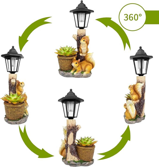 Solar Squirrels Outdoor Statues, Garden Sculptures with Flowerpot Decor & Solar Lantern for Yard Art Lawn Ornaments Porch Patio Balcony - Birthday Gifts for Women Mom