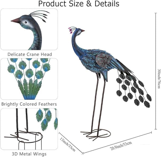 VEWOGARDEN Peacock Outdoor Garden Sculptures & Statues Metal Peacock Yard Art for Lawn Patio Pool Outside Decorations