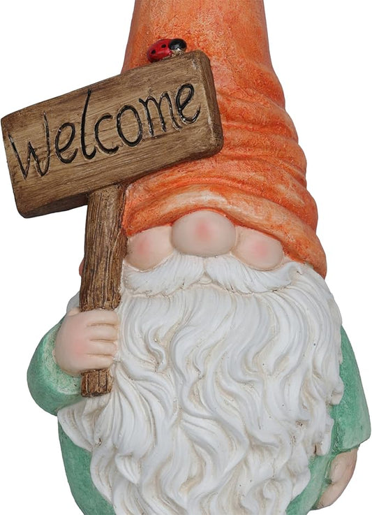 Alpine Corporation MCC848 Indoor/Outdoor Gnome with "Welcome" Sign Garden Statue, Charming Gnome with Hat, 26"H, Orange