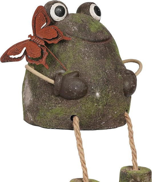 Alpine Corporation MCC836 Indoor/Outdoor Frog with Butterfly Garden Statue, Playful Frog Statue for Yard, 20" H, Green