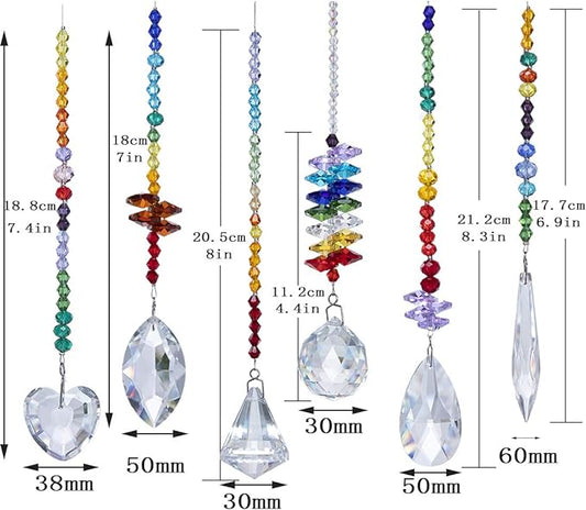 H&D HYALINE & DORA Colorful Crystals Glass Pendants Chandelier Suncatchers Prisms Hanging Ornament Octogon Chakra Crystal Pendants for Home,Office,Garden Decoration,Pack of 6