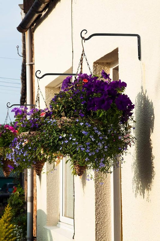 Mkono Hanging Plant Bracket 10 inch Metal Wall Plant Hook Decorative Plant Hanger for Bird Feeders, Planters, Lanterns, Wind Chimes, Home Decor Indoor Outdoor 4 Pack, Black