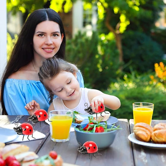 Metal Garden Decor for Outside Cute Ladybugs Yard Art Lawn Ornaments Wall Sculptures & Statues Outdoor Fence Decorations for Patio - Set of 4